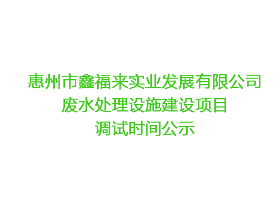 惠州市鑫福來實業(yè)發(fā)展有限公司 廢水處理設(shè)施建設(shè)項目調(diào)試時間公示